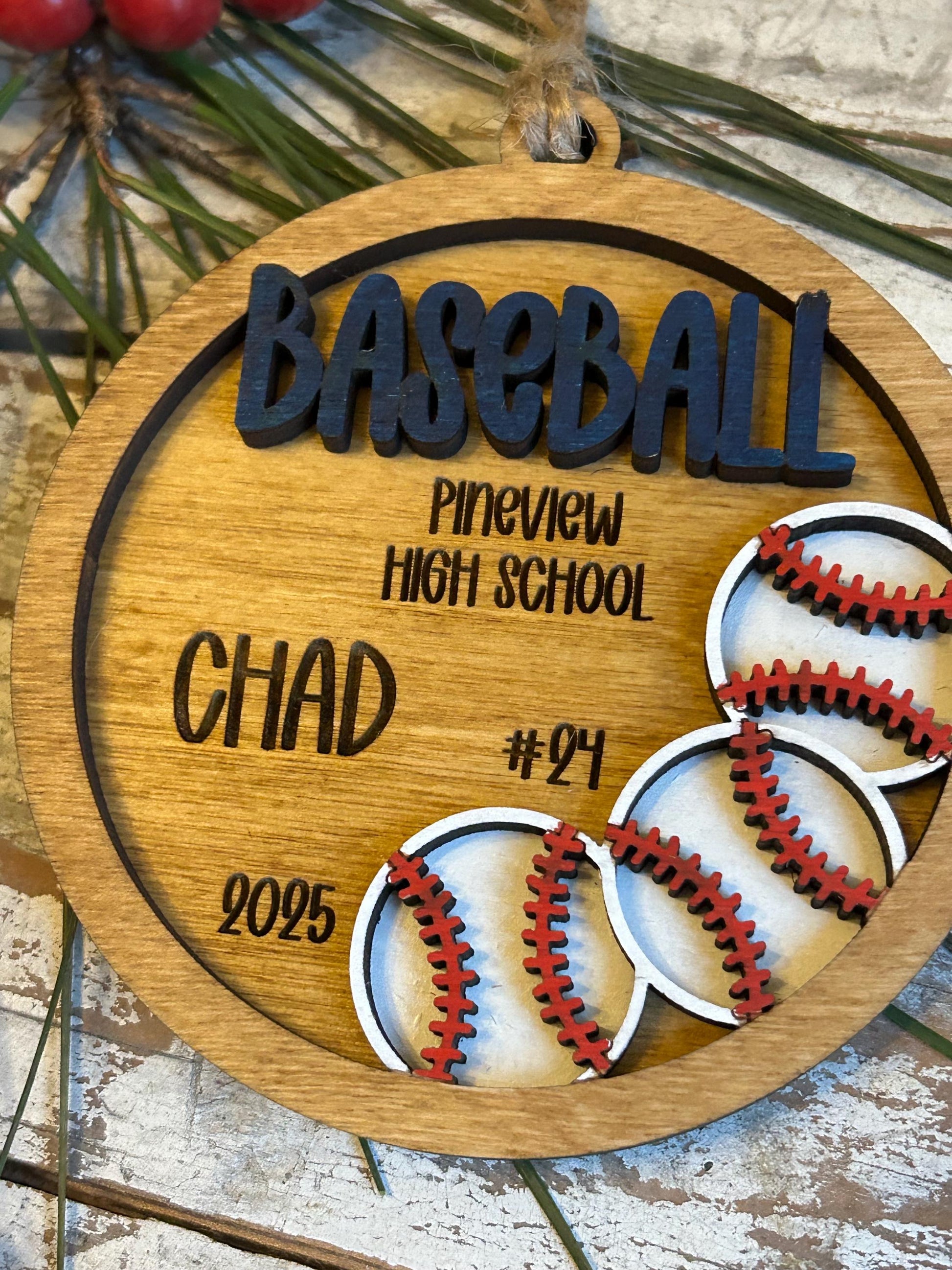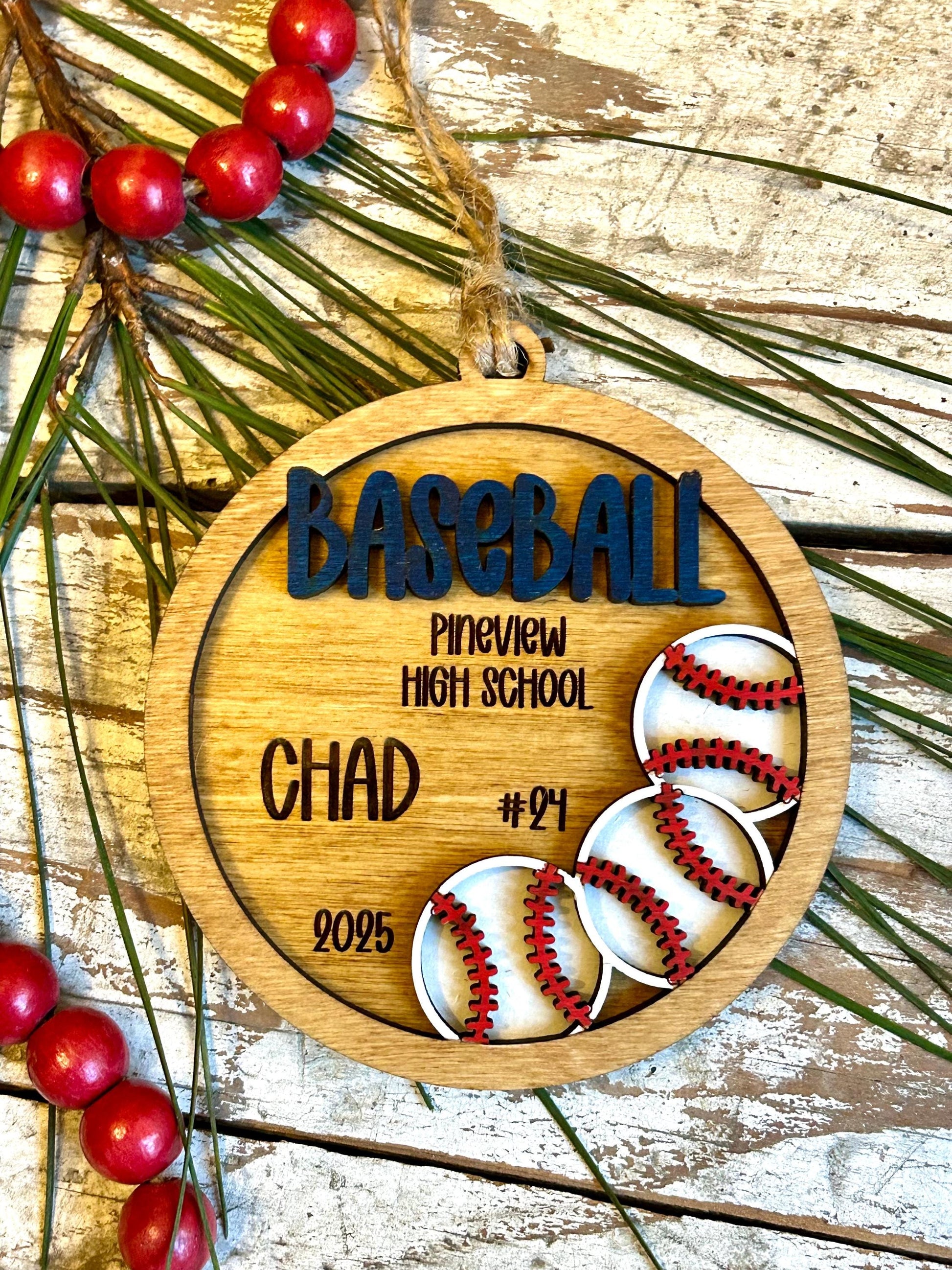 Personalized Baseball Player Christmas Tree Ornament | Gift for High School Baseball Team | Custom Baseball Coach | Senior Baseball Gift